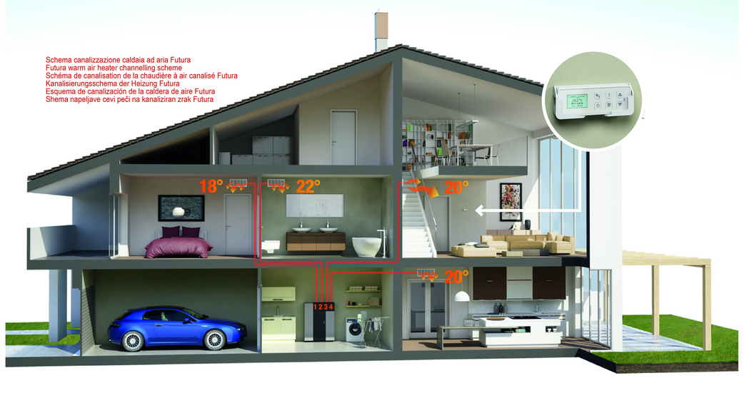 Die verschiedenen Systeme des geschlossenen Umluft-Pelletkessels – EVACALOR Futura 18,5 kW